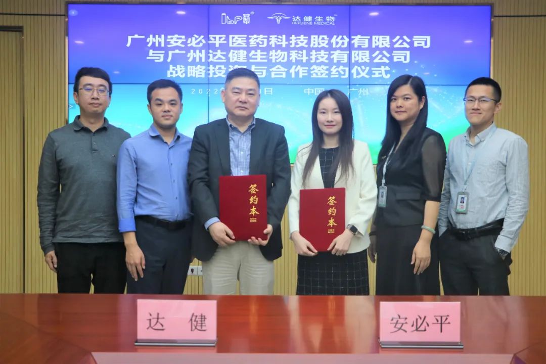 安必平战略与投资部负责人、董事会秘书蔡幸伦与达健生物总经理丁方代表双方签约