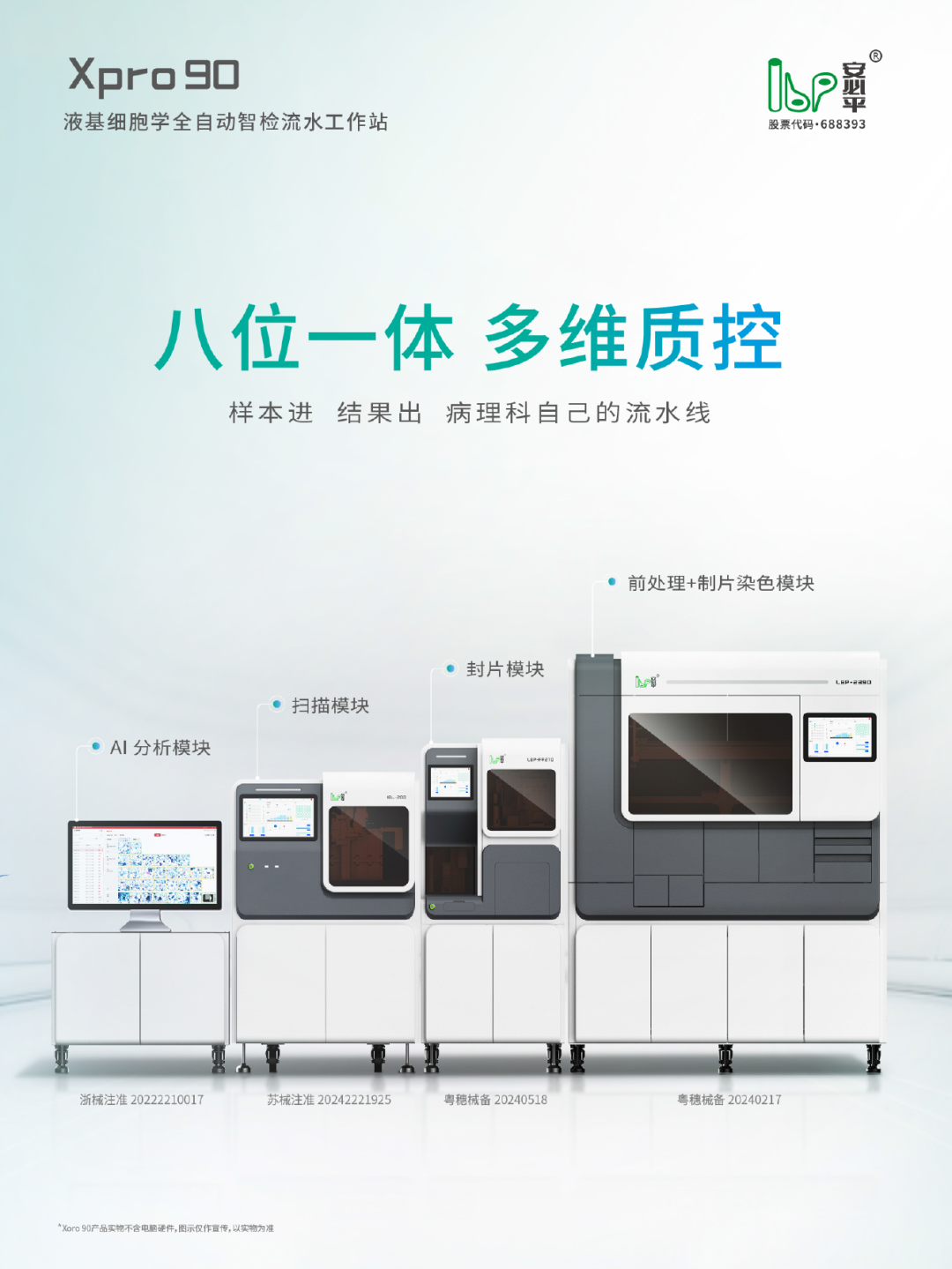 为赋能病理科“标准化、自动化、数字化、智能化”建设,安必平倾力打造Xpro 90液基细胞学全自动智检流水工作站,由LBP-2390制片染色一体机、LBP-FP270全自动封片机、IBL200全自动数字切片扫描系统以及宫颈液基细胞学图像辅助诊断软件(LBP-PIAS)完美组合而成,具备高度集成化的全自动一体化运行模式,实现全流程自动化,样本进,结果出。