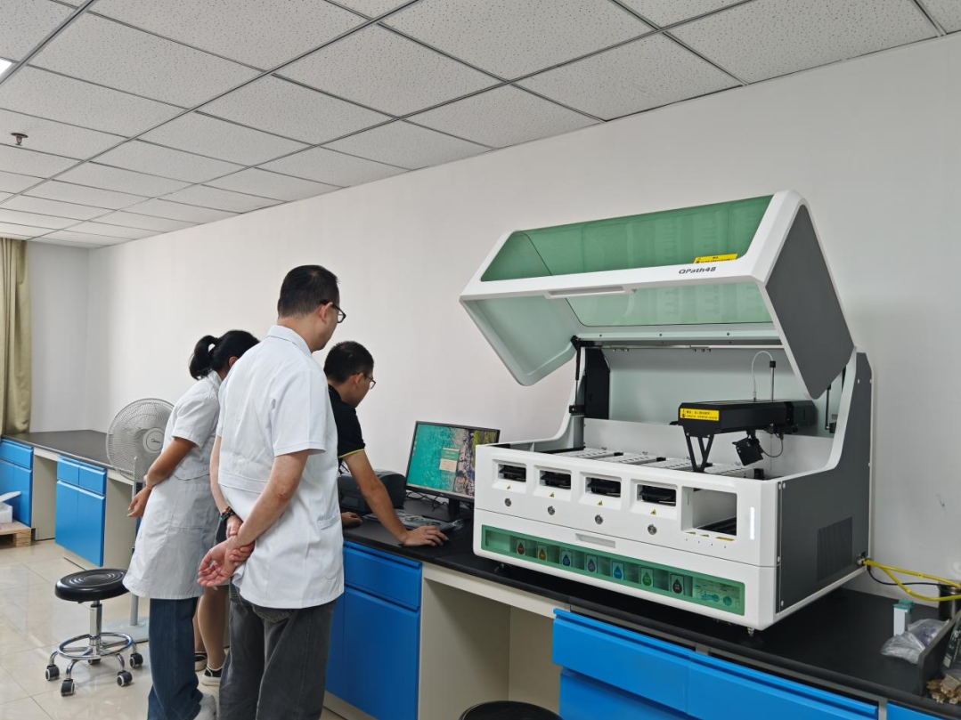 5月11日,满载专业试剂的货车从杭州疾驰启程。在曹军团队"与时间赛跑"的筹备中,5月16日试剂顺利抵疆,5月18日机器到位、安装工程师到位。与此同时,技术团队远程指导设备调试方案,与沙雅病理科昼夜协同攻关。当首份"沙雅产"病理报告诞生的瞬间,在场医护无不动容,这薄薄的一页纸,承载着南疆肿瘤患者早诊早治的希望。
