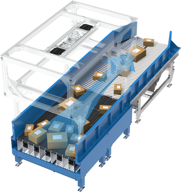 正弦电气单件分离解决方案实现包裹自动整位、分离、智能排队。系统整合了机械、光电、视觉技术,对批量呈交错、搭接、堆叠等状态的包裹,进行分散、并行排队、横向集中,最终转化为单列输出,配合大型自动分拣设备,可以实现全自动传输和分拣。