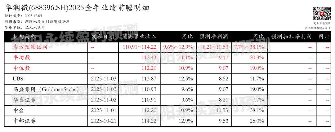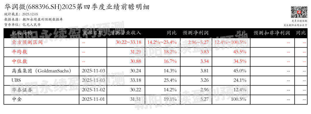 2. 华润微 最新卖方观点 UBS认为: 华润微 在3Q25的营收同比增长5%,达到28.51亿元,但归母净利润同比减少15%,为1.87亿元,低于预期。主要受联营企业投资损失和资产减值影响。6寸/8寸产线利用率保持高位,综合毛利率环比提高2ppts至27.9%,部分IGBT产品价格小幅上涨。半导体产品收入占比提升至55%,MOS、IGBT、SiC、IPM模块均实现较好增长。12寸产线处于爬坡阶段,重庆产线产出已达3万片/月,深圳产线聚焦高端模拟产品,产出约5千片/月。公司对2026年资本支出持谨慎态度,主要目标是提升12寸产线产能利用率。