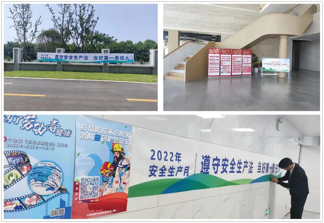 围绕安全生产月主题,公司开展了多维度、多渠道的宣传活动:公共空间、一楼大厅及食堂等处,特别定制的「安全生产月」专题展板、宣传条幅等随处可见。