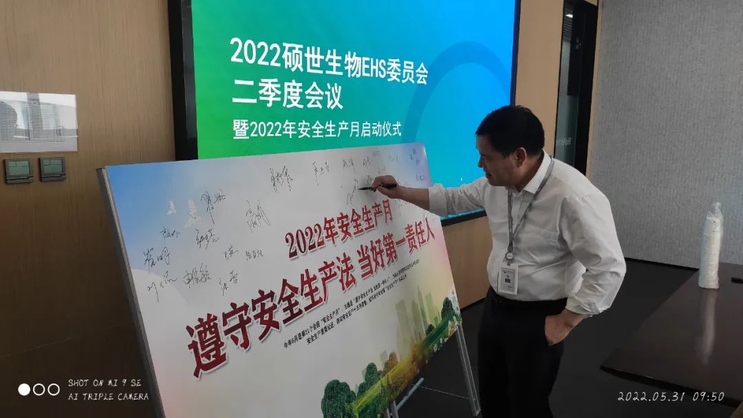 硕世生物总裁王国强亲自部署安全月活动。王国强博士强调,在安全生产方面,必须走在前、作表率,始终将安全生产纳入日常管理,常抓不懈,严格依照法律法规要求,抓好安全生产各项工作,坚决克服麻痹思想、侥幸心理,有效防范并坚决遏制安全生产事故发生。