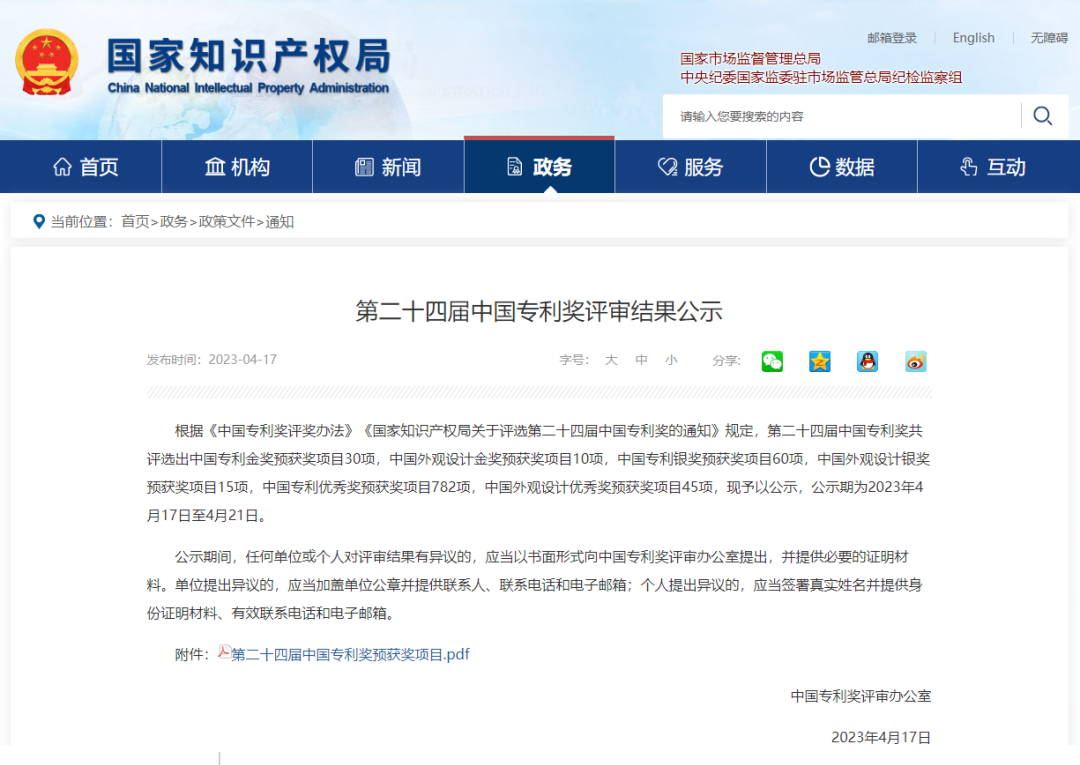 第二十四届中国专利奖评审结果出炉,硕世生物“一种检测人乳头瘤病毒的核酸组合及其应用和试剂盒”专利获中国专利优秀奖。