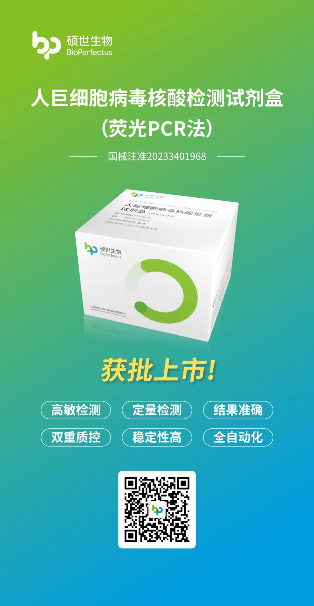 近日,硕世生物最新研制的人巨细胞病毒核酸检测试剂盒(荧光PCR法)获批上市(国械注准:20233401968),为孕妇优生优育、新生儿、HIV感染者等免疫力低下人群、器官移植等人群的巨细胞病毒检测新添利器。
