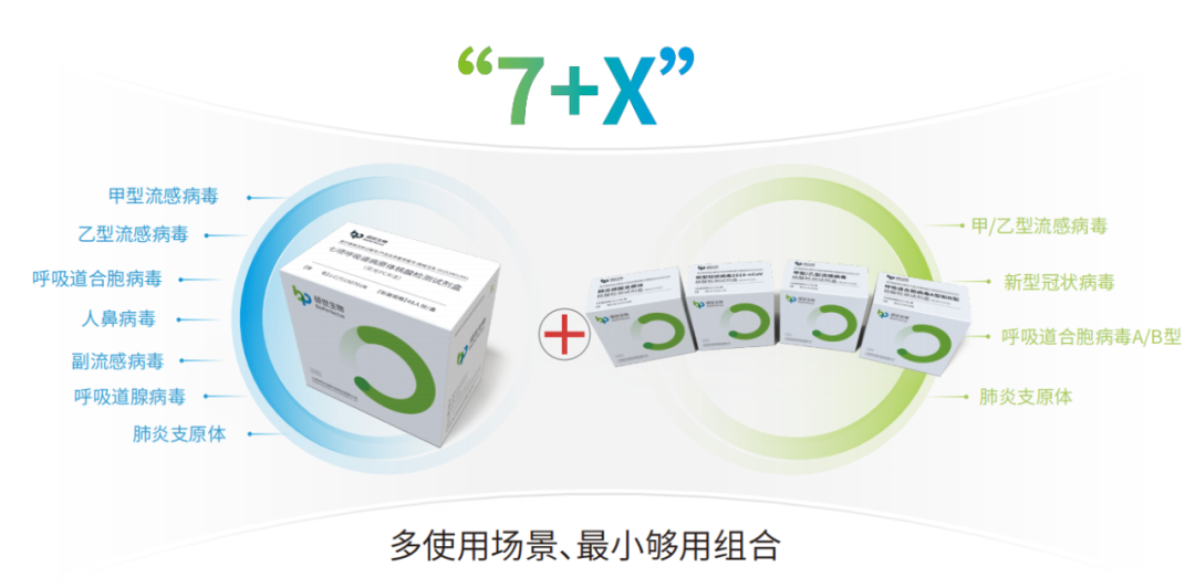 硕世呼吸道病原全自动检测“7+X”解决方案,更灵活产品组合,可实现最小够用组合,保障多级医疗机构常态化检测中、小通量特点,做到仪器项目不闲置。