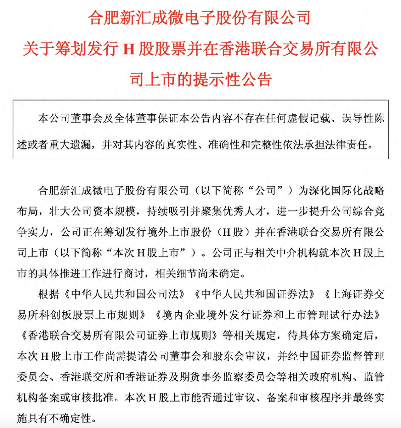 2月27日,汇成股份发布公告称,为深化国际化战略布局,壮大公司资本规模,持续吸引并聚集优秀人才,进一步提升公司综合竞争实力,公司正在筹划发行境外上市股份(H股)并在香港联合交易所有限公司上市。公司正与相关中介机构就本次H股上市的具体推进工作进行商讨,相关细节尚未确定。