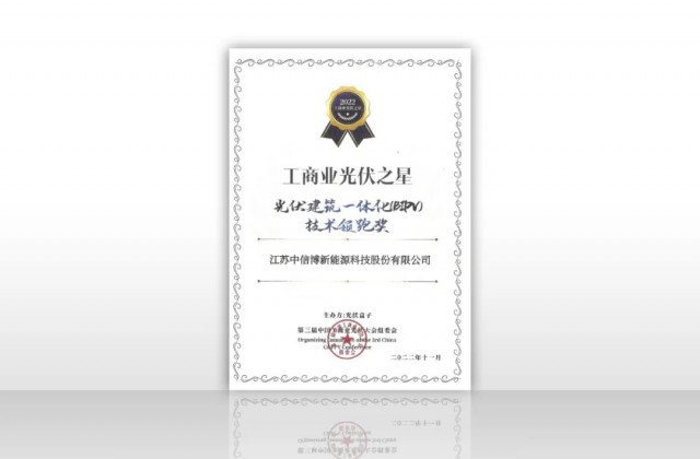日前,第三届中国工商业光伏大会在南京隆重举行,大会聚焦工商业光伏发展,围绕分布式光伏未来展开深度探讨。会上颁发了2022工商业光伏之星奖项,中信博BIPV凭借在分布式光伏领域的技术创新和卓越表现,荣获“光伏建筑一体化(BIPV)技术领跑奖”。