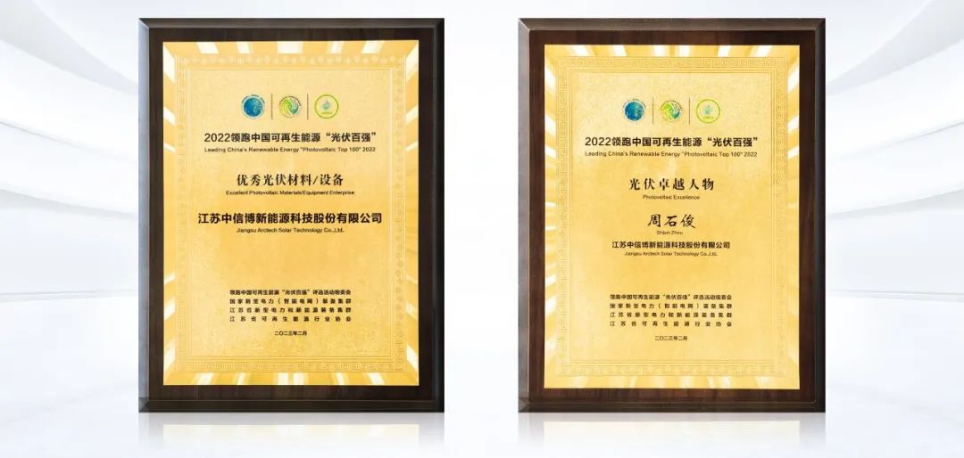 会议同期,举办了2022领跑中国可再生能源“光伏百强”颁奖典礼。凭借在光伏领域的突出表现,中信博荣获“优秀光伏材料/设备企业”荣誉称号,中信博董事、高级副总裁周石俊先生被评为“2022光伏卓越人物”。
