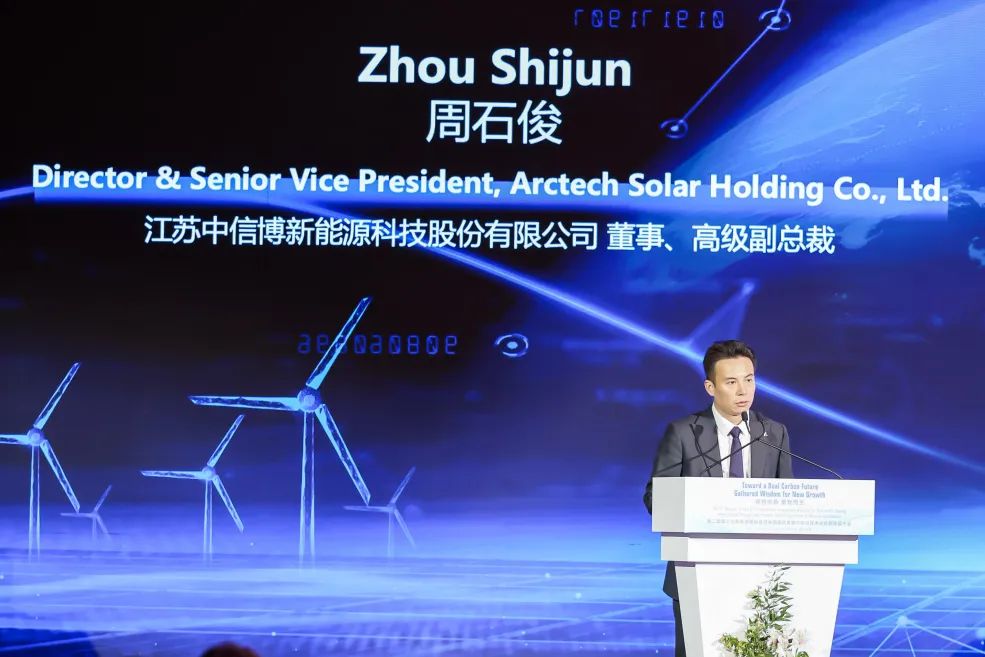 大会中,中信博董事、高级副总裁周石俊发表主题演讲,向与会嘉宾分享了中信博全球化绿色升维的多项举措。