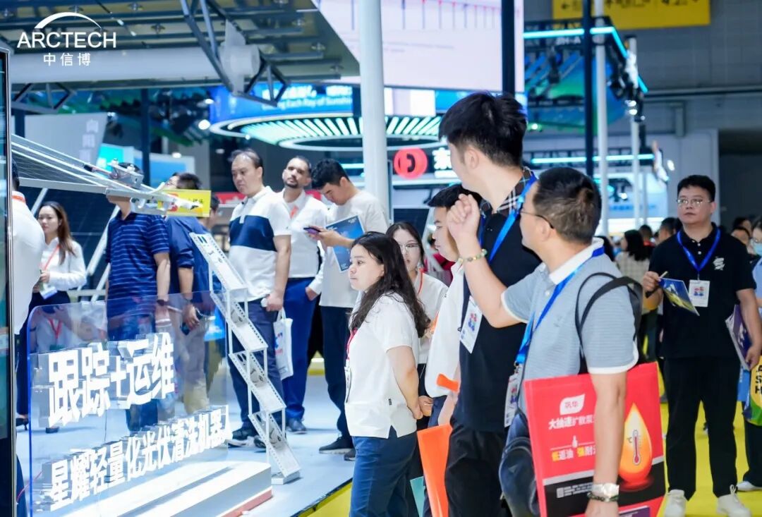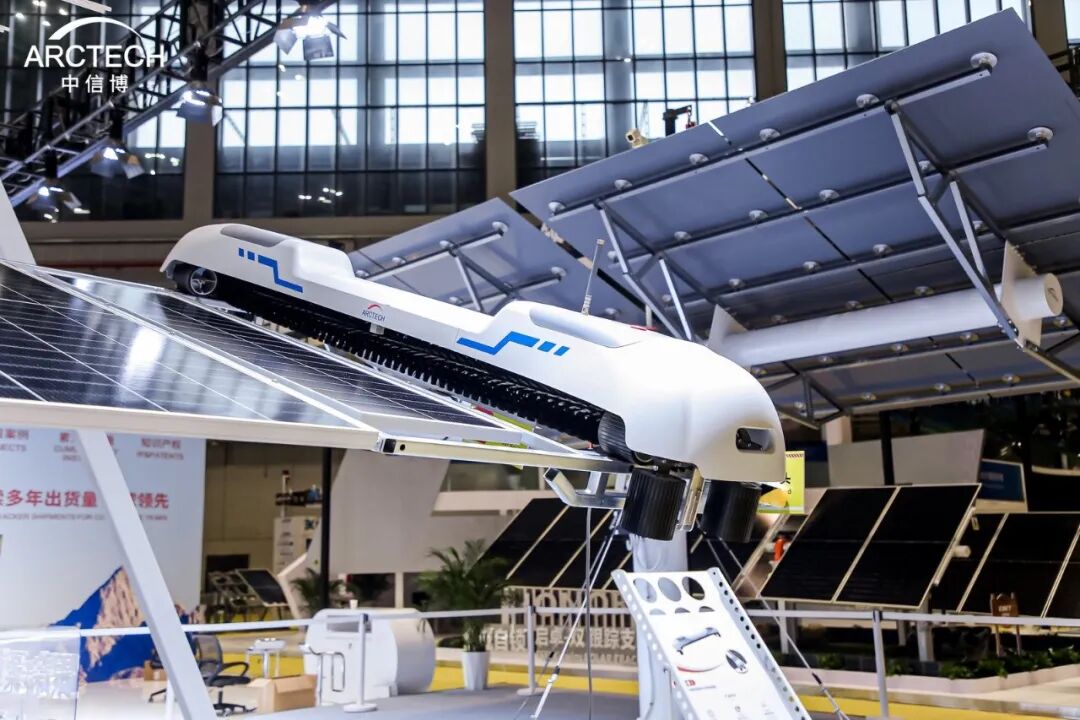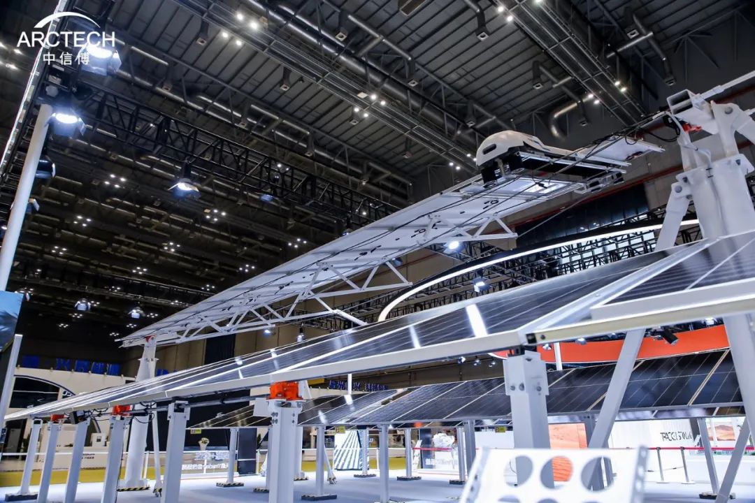 本次展会,中信博携跟踪+、绿电+全系列、全场景产品亮相。展出了跟踪+智能跟踪、智能清扫机器人、柔性跟踪、塔式光热等以跟踪系统为核心的创新解决方案;同时围绕绿电+,重点展示了含储能、建筑绿能、离网移动式解决方案、光电建材等在内的全链产品。