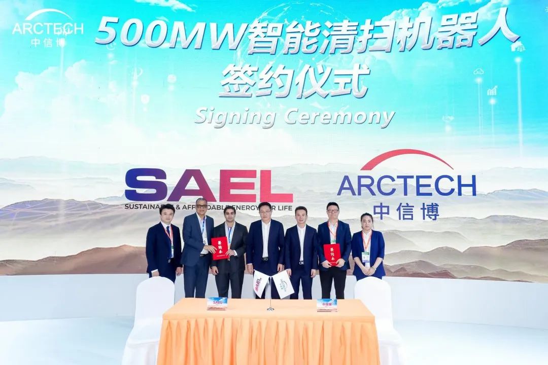 同时,深拓产业升维,中信博于展会现场签署青海综合能源海南100万千瓦光储一体化项目、印度500MW智能清扫机器人项目合作,将“跟踪+”一站式解决方案深度落地全球光伏市场,进一步强化拓展中信博“跟踪+”“绿电+”全产业链合作。