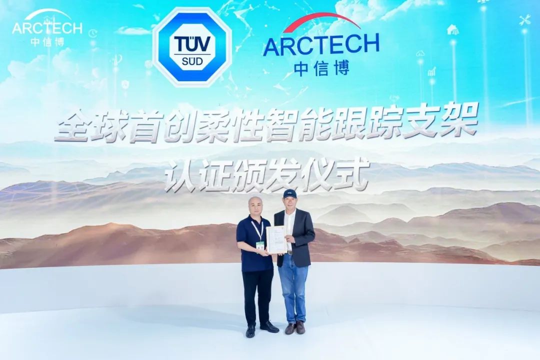 展会现场,中信博天柔Tracker柔性跟踪支架获得TUV南德颁发的“全球首创柔性智能跟踪支架”成为全球首款获此资质的创新产品。以柔性智能跟踪驱动复杂场景高效配,中信博再度以行业领先实力撬动复杂场景解决方案“天花板”。