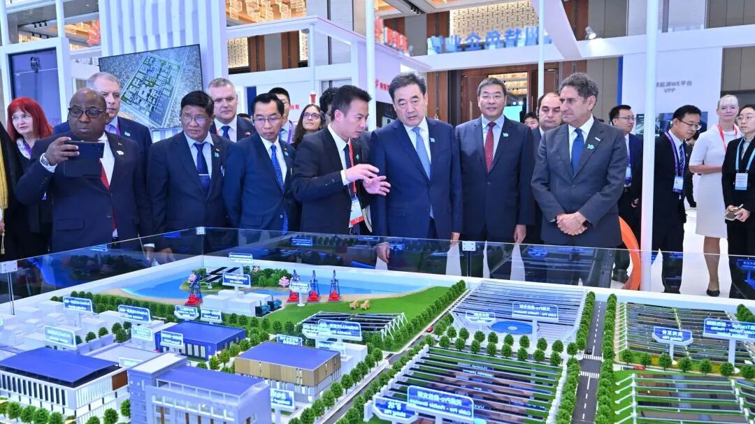 会议期间,国家能源局局长王宏志等领导莅临中信博展台参观指导,中信博高级副总裁周石俊系统介绍了中信博围绕“跟踪+”“绿电+”的智慧能源一站式解决方案,包括复杂场景跟踪、柔性支架系统、储能及光储充一体化解决方案等,同时对企业在十四五期间深度参与“一带一路”绿色能源合作的实践成果及项目进展进行了详细介绍。