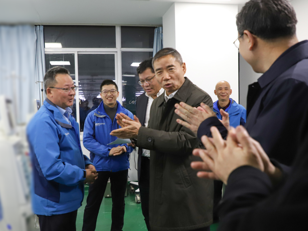 随后,辛国斌副部长一行又深入山外山血液净化耗材和血液净化设备的生产车间进行了考察。