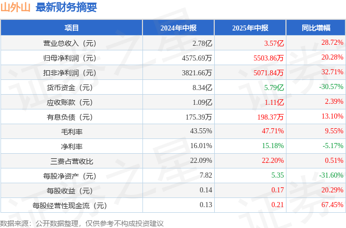 据证券之星公开数据整理,近期山外山(688410)发布2025年中报。截至本报告期末,公司营业总收入3.57亿元,同比上升28.72%,归母净利润5503.86万元,同比上升20.28%。按单季度数据看,第二季度营业总收入1.68亿元,同比上升45.51%,第二季度归母净利润1803.22万元,同比上升56.47%。本报告期山外山公司应收账款体量较大,当期应收账款占最新年报归母净利润比达157.22%。