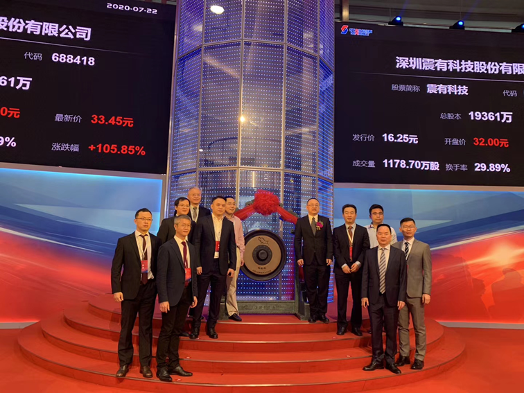 2020年7月22日,深圳震有科技股份有限公司(688418.SH)在上交所科创板成功上市,迈出了在资本市场的第一步,持续为中国科技发展与创新助力。