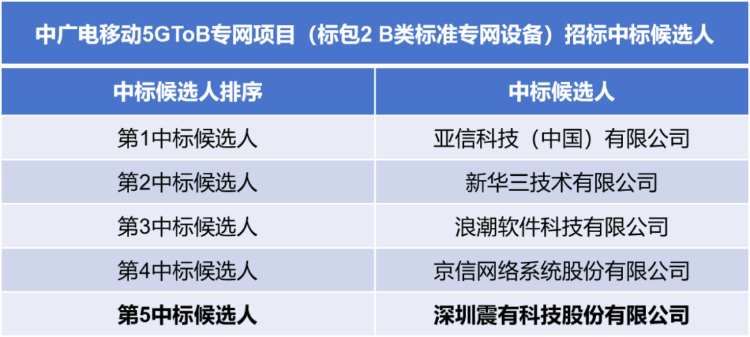 2024年2月4日,震有科技成功中标《中广电移动5GToB专网项目》,这是震有科技5G专网核心网及配套的无线基站、网管在国内运营商市场的重大突破,表明震有科技多年沉淀打磨的自研核心网、无线基站、网管产品及服务能力获得了广电集团等运营商的高度认可。本次集采中标获得分配份额14%。