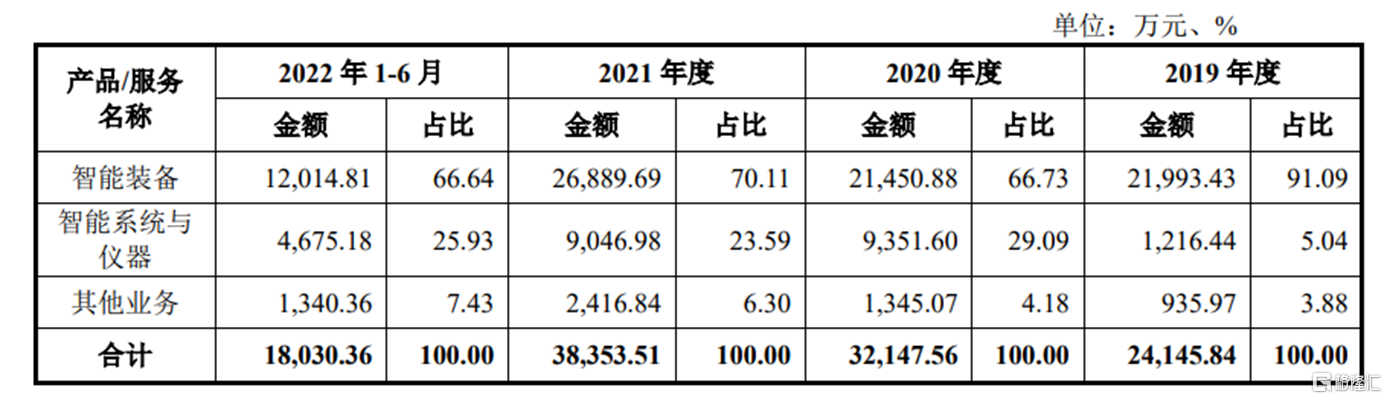 报告期内,智能装备收入、智能系统与仪器收入为公司主营业务收入的主要来源,综合毛利率分别为65.56%、62.93%、57.48%、55.96%,呈下降趋势。