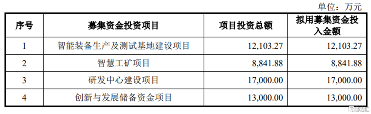 本次拟募资5.09亿元,主要用于智能装备生产及测试基地建设项目、智慧工矿项目、研发中心建设项目、创新与发展储备资金项目。