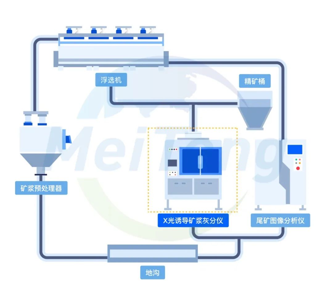 可应用于选煤厂粗煤泥分选和浮选环节,能同时在线检测入选原煤、精煤、尾矿的灰分和硫分,作为智能浮选的“眼睛”,可以单独使用也可以与智能浮选系统、尾矿图像分析仪搭配使用,可实现: