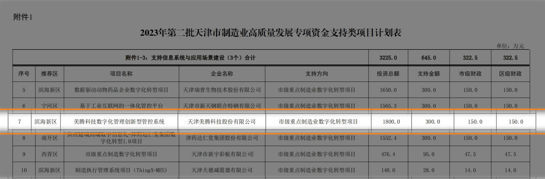 2023年12月,天津市工信局公示了“2023年天津市制造业高质量发展专项资金支持类项目”。天津美腾科技股份有限公司自研的【美腾科技数字化管理创新型管控系统】,荣获2023年第二批天津市制造业高质量发展专项资金支持,为美腾科技的研发工作注入新动力。