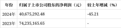 归属于上市公司股东的净利润为40,675,292.48元,较去年的74,235,165.65元下降45.21%。公司表示,近两年行业周期性调整,市场竞争加剧,为争取市场机会,公司加大市场开拓力度,同时规模扩大导致销售费用和管理费用增加1,908.59万元。此外,基于谨慎性原则,本期增加计提存货跌价准备1,559.36万元,且2024年度为莱煤智能成立后的首个经营年度,这些因素共同导致利润水平同比下降。