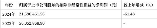 归属于上市公司股东的扣除非经常性损益的净利润为21,590,461.56元,相较于2023年的56,052,868.90元,下降幅度高达61.48%。这一数据反映出公司核心业务盈利能力面临较大挑战,非经常性损益对净利润的影响较为显著。