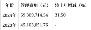 管理费用为59,309,714.54元,相比2023年的45,103,051.76元增长31.50%。主要原因是本年职工薪酬结构变化及离职补偿金增加。管理费用的大幅增长可能影响公司的成本控制和盈利能力,需要关注公司后续的管理效率提升措施。