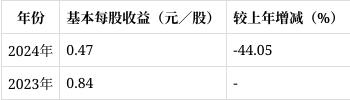 基本每股收益为0.47元/股,2023年为0.84元/股,下降44.05%。主要原因是本期净利润及扣非净利润同比下降,导致每股收益相应减少。