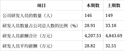 公司研发人员数量为146人,较上年的149人略有下降,占公司总人数的比例为28.91%。研发人员薪酬合计4,207.51万元,平均薪酬28.82万元。从学历结构看,博士研究生2人,硕士研究生35人,本科100人,专科及以下9人;从年龄结构看,30岁以下40人,30 - 40岁88人,40 - 50岁18人。整体研发团队结构较为稳定,为公司研发创新提供了人力保障。