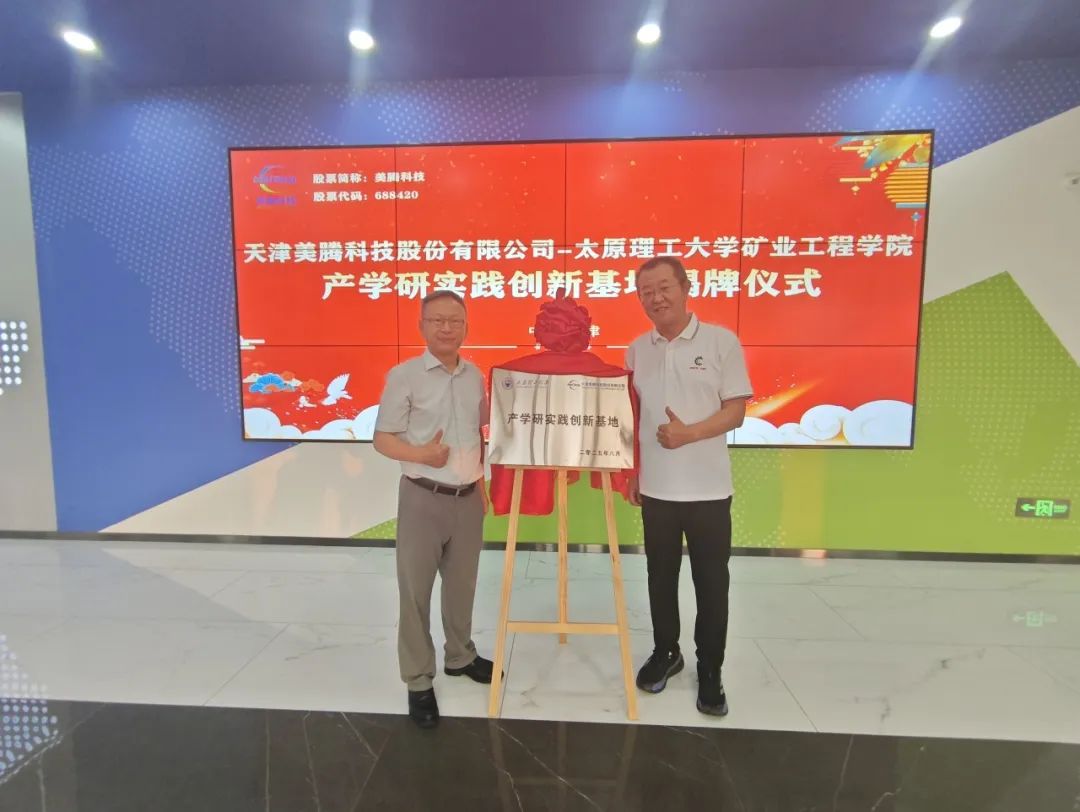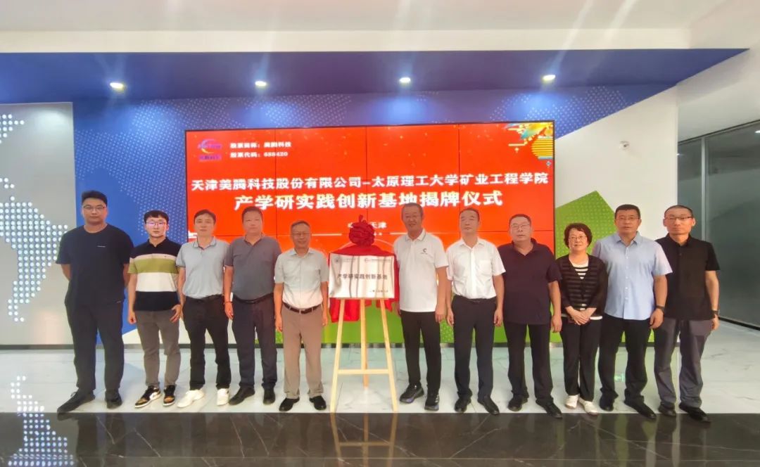 2025年8月23-24日,太原理工大学矿业工程学院书记张忠璞、院长王开一行赴天津美腾科技股份有限公司开展调研交流,美腾科技董事长李太友一行陪同接待。调研团队参观了美腾科技西青研发中心和生态城制造基地,重点考察了TDS+TGS产品、井下“选-充”一体化解决方案、知煤大师和数字孪生等创新技术。期间,双方共同为“产学研实践创新基地”揭牌,标志着校企合作迈入新阶段。