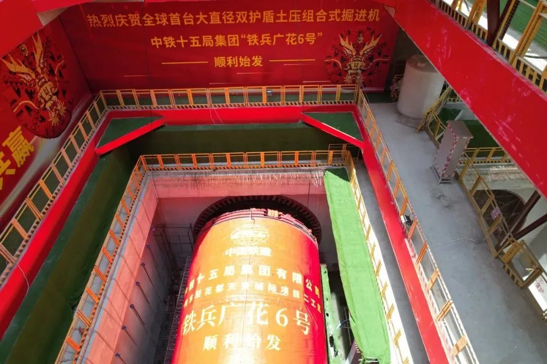 近日,由铁建重工、中铁十五局联合打造的全球首台大直径双护盾土压组合式掘进机“铁兵广花6号”,在广州东至花都天贵城际铁路(广花城际)京溪路至白云东平区间(京白区间)2号盾构井顺利始发。