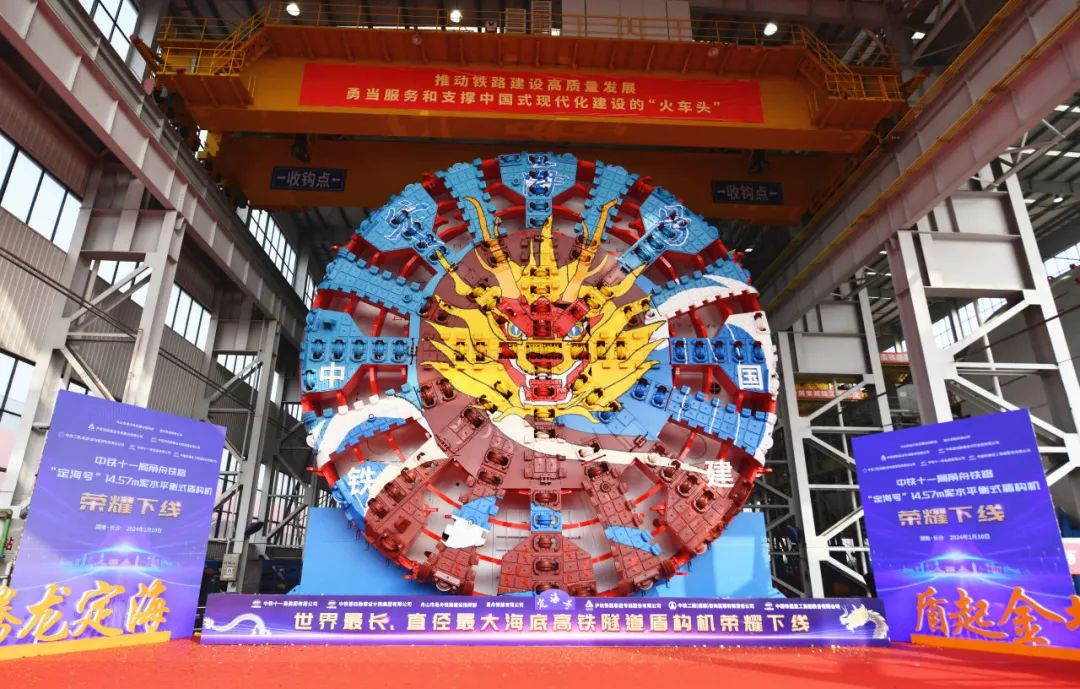 1月10日上午,由铁建重工和中铁十一局联合打造的世界最长高铁海底隧道盾构机“定海号”在铁建重工长沙第一产业园区下线。