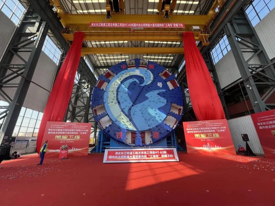 2024年10月31日,由铁建重工、中铁十四局、铁四院联合打造,最大开挖直径达16.64米的超大直径盾构机“江海号”在湖南长沙下线。这是由我国科研人员自主研制出的最大直径盾构机。“江海号”应用于目前世界最长公路水下盾构隧道——海太长江隧道的施工。