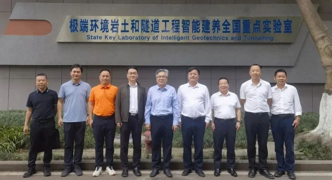 赵晖一行参观了极端环境岩土和隧道工程智能建养全国重点实验室,针对隧道工程智能建养技术的最新研究成果和应用前景等展开交流。