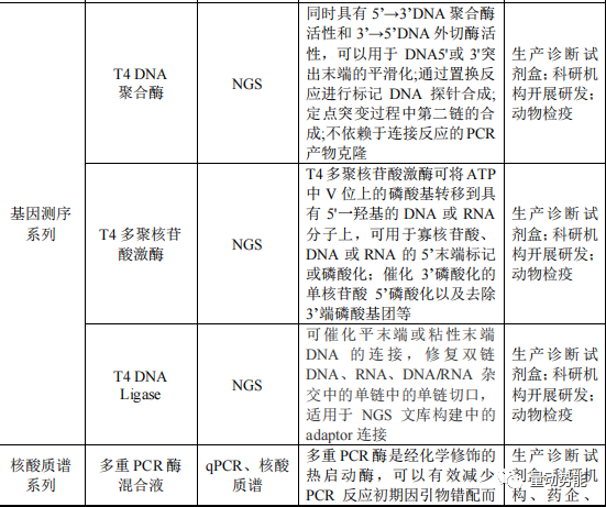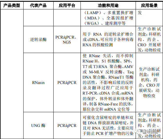 经过十余年自主研发,公司已开发 117 种分子检测原料酶,主要包括 Taq 聚合酶、热启动 PCR 酶、高保真 PCR 酶、等温扩增酶、逆转录酶、各种测序工具酶等,可用于 PCR、qPCR、RT-PCR、等温扩增、一代测序、二代测序、核酸质谱等多个方向,产品性能已达到或超过进口产品的技术水平。