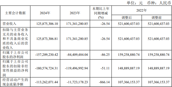 2024年,康为世纪实现营业收入1.26亿元,同比减少26.54%;归属于上市公司股东的净利润-1.57亿元,上年同期为-8440.95万元;归属于上市公司股东的扣除非经常性损益的净利润-1.81亿元,上年同期为-1.19亿元;经营活动产生的现金流量净额-1.13亿元,上年同期为-1172.32万元。