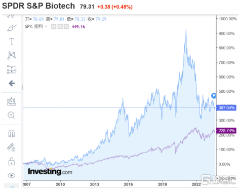 对标海外成熟市场来看,倘若将时间拉长,长坡厚雪的赛道依旧有不错的投资回报。在过去16年,作为美国生物科技板块的代表XBI指数即使出现4次30%以上的回撤,依旧整体录得了387%的收益(年化11.13%),远由于标普500的229%,最高收益更是近十倍。(数据截止2023年8月30日)