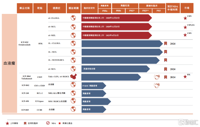 除了打造爆款重磅产品奥布替尼外,公司已经打造密集的血液瘤管线,通过单药或联合用药覆盖多发性骨髓瘤(MM)、非霍奇金淋巴瘤(NHL)和白血病。市场最近火热的BCL2靶点,诺诚健华正在加速推进,其ICP-248(BCL2)今年底前提交美国IND。初步的研究结果显示,ICP-248展现出与其他BCL-2抑制剂不同的良好药代动力学,在低剂量下实现高暴露量。在3名已评估患者中,2名患者达到完全缓解(CR),微小残留病灶(uMRD)已检测步到,有望与奥布替尼构成王炸组合,诺诚健华称"这可能成为本公司全球化的重要资产",BTK+ BCL-2抑制剂的巨大潜力将成为行业重头戏。