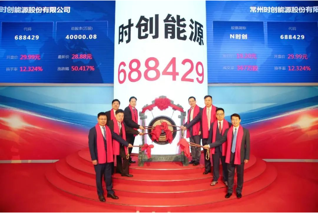 6月29日,常州时创能源股份有限公司(简称:时创能源)正式在上交所科创板挂牌上市。