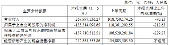 时创能源(688429.SH)昨日晚间披露2024年半年度报告。上半年,公司实现营业收入2.68亿元,同比下降70.83%;归属于上市公司股东的净利润-1.33亿元,上年同期为1.18亿元;归属于上市公司股东的扣除非经常性损益的净利润-1.38亿元,上年同期为1.07亿元;经营活动产生的现金流量净额-2.43亿元,上年同期为-1.35亿元。