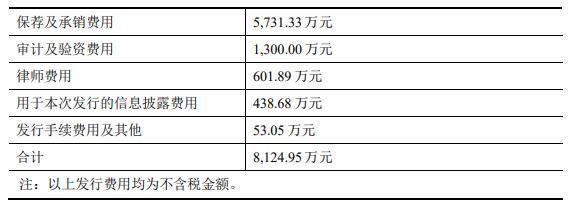 华曙高科本次公开发行新股的发行费用为8,124.95万元,其中保荐及承销费用5,731.33万元。