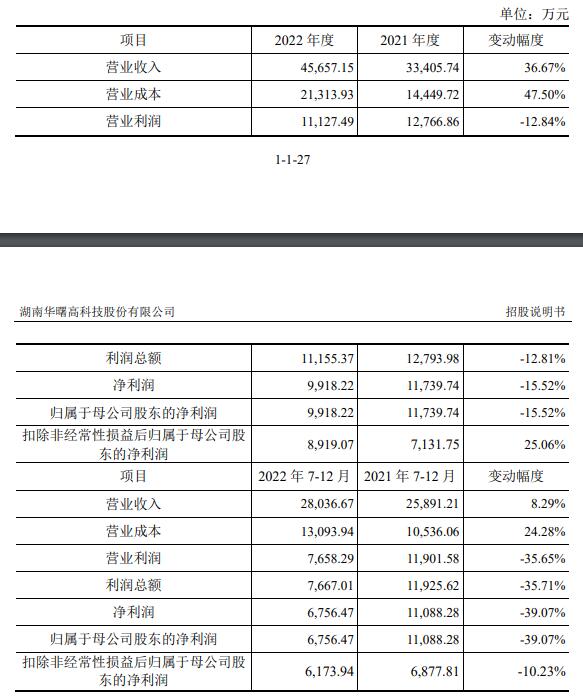 2019年、2020年、2021年、2022年1-6月,华曙高科营业收入分别为15,504.96万元、21,727.34万元、33,405.74万元、17,620.48万元;归属于母公司股东的净利润分别为1,795.05万元、4,096.15万元、11,739.74万元、3,161.74万元;扣除非经常损益后归属于母公司股东的净利润分别为640.27万元、3,321.40万元、7,131.75万元、2,745.14万元。