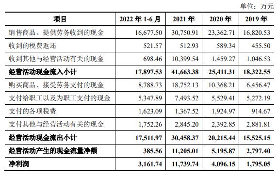 2019年、2020年、2021年、2022年1-6月,华曙高科销售商品、提供劳务收到的现金分别为16,820.53万元、23,362.71万元、30,750.91万元、16,677.50万元;华曙高科经营活动产生的现金流量净额分别为2,797.40万元、5,195.87万元、11,205.01万元、385.56万元。