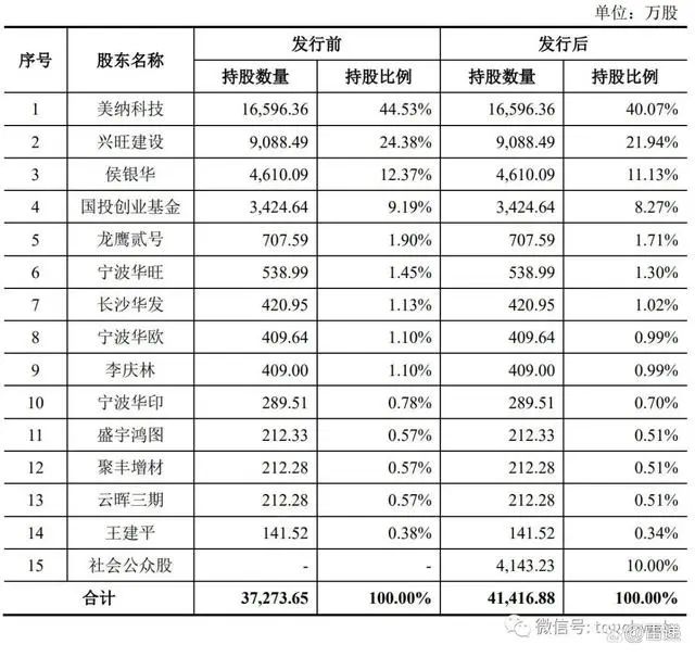 IPO前,华曙高科董事长许小曙与董事、副总经理DON BRUCE XU(许多),分别持有美纳科技75%、19.8%股权,间接控制华曙高科44.53%的股份;IPO后,美纳科技持股为40.07%,兴旺建设持股为21.94%,侯银华持股为11.13%,国投创业基金持股为8.27%。