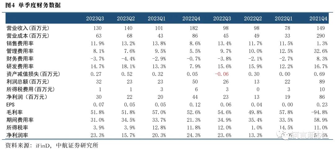 2023年前三季度公司实现营业收入3.7亿元(+35.2%),实现归母净利润0.73亿元(+32.6%),对应基本EPS为0.18元,扣非归母净利润0.63亿元(+36.3%);其中2023Q3公司实现营业收入1.3亿元(同比+32.4%,环比-7.0%),实现归母净利润0.30亿元(同比+30.3%,环比+37.5%),扣非归母净利润0.24亿元(同比+26.3%,环比+13.1%)。