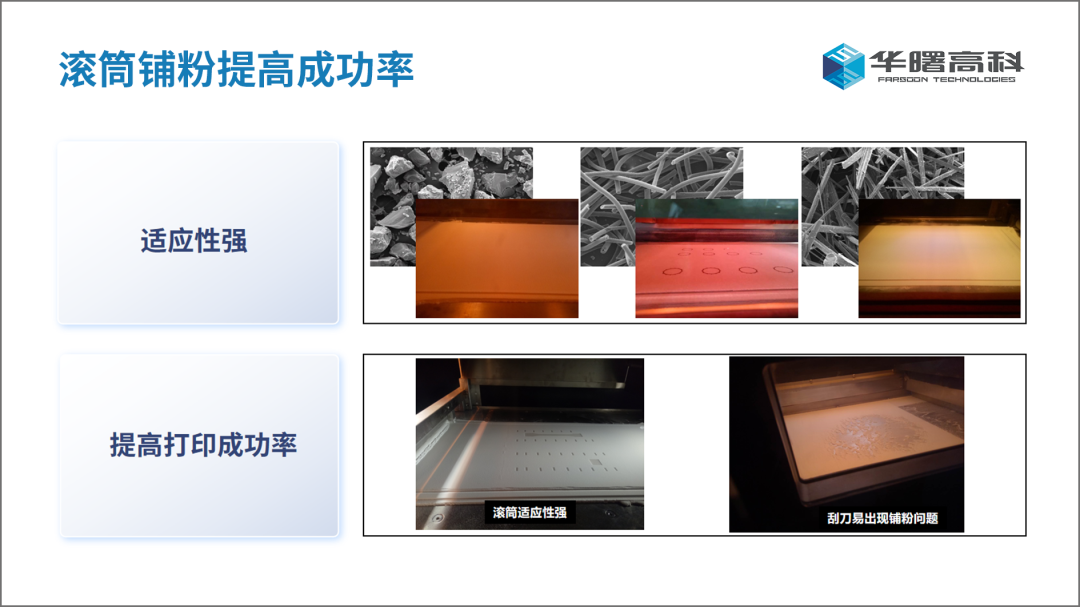 烧结超高温尼龙材料对3D打印设备的温场控制要求极高,目前,全球能成熟烧结超高温尼龙材料的3D打印设备屈指可数。华曙高科UT252P设备采用自主研发的8区温控技术,温场均匀性优异,有利于表面质量及性能控制;UT252P采用滚筒铺粉,对粉末流动性要求低,适应材料更广泛,不仅降低材料研发难度,还能降低翘曲概率,提高打印质量和成功率。