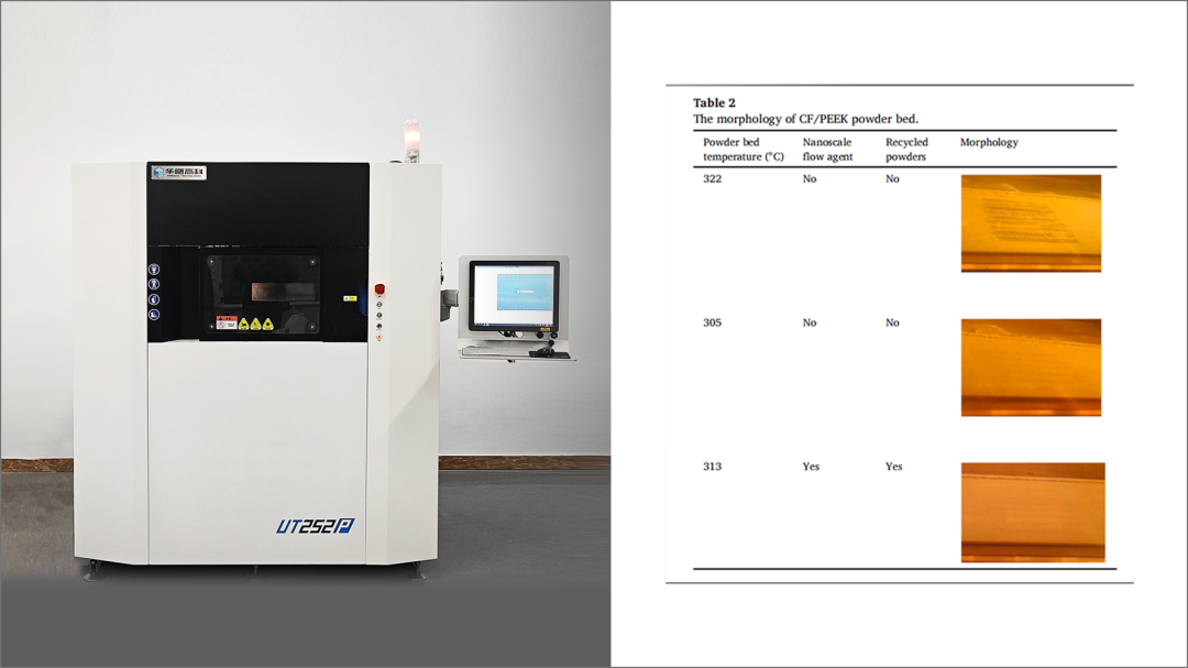 近期,南京理工大学智能制造学院汤海斌课题组,基于华曙高科开源、超高温高分子增材制造设备UT252P,自主研发的碳纤维增强PEEK(CF/PEEK)复合材料SLS制备工艺研究项目,取得重要成果。