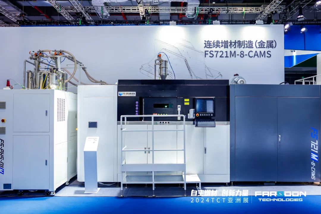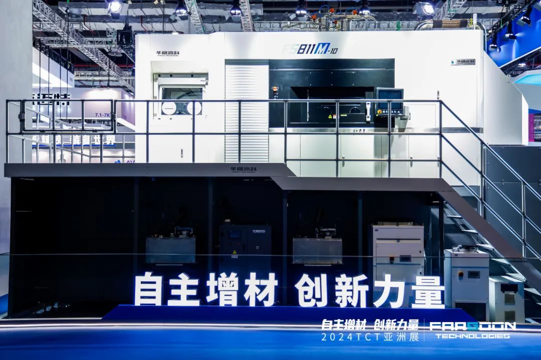 华曙高科在本次TCT亚洲展现场共带来了4款金属和高分子设备,包括面向航空航天行业的主力设备FS811M的10激光配置,面向航空航天、汽车和消费品行业的FS721M的8激光连续增材制造设备。
